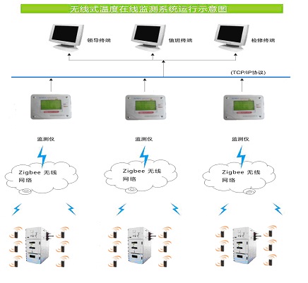 無線測溫系統主要有由無線溫度顯示儀、無線溫度傳感器、后臺監控軟件組成。通過分布式安裝在現場的無線溫度傳感器采集溫度信息,然后將溫度信息以無線通訊的方式發送至接收主機,分析處理、集中顯示。通過組網亦可連接至后臺軟件系統,實施遠程在線監測。系統具備完善的用戶管理、越限報警、歷史記錄、曲線查看等功能。